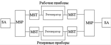 В сети SDH можно осуществлять защиту секций мультиплексирования (оконечного оборудования секции мультиплексирования - Multiplex Section Termination, MST), путем использования блока защиты секции мультиплексирования (Multiplex Section Protection, MSP).