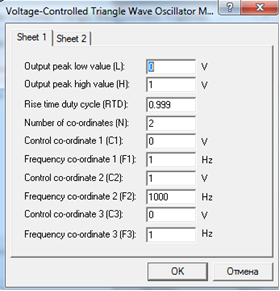 Рисунок 8.3- Настройки генератора, управляемого напряжением, в генераторе ЛЧМ импульсов