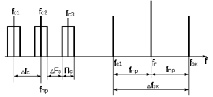 Известно, что допустимая частота соседнего канала определяется заданной избирательностью по соседнему каналу δск. Распределение частот соседних каналов поясняется на рисунке 1.